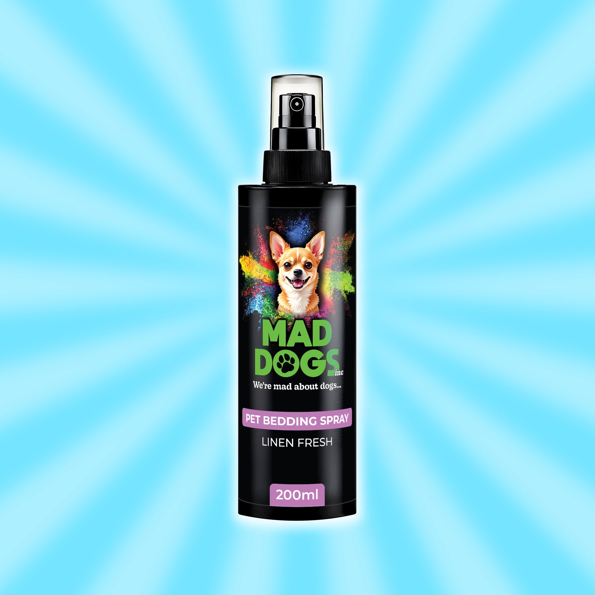 Keep your pet’s space—and your home—smelling as fresh as it feels with Mad Dog Inc. Linen Fresh Pet Bedding Spray!
